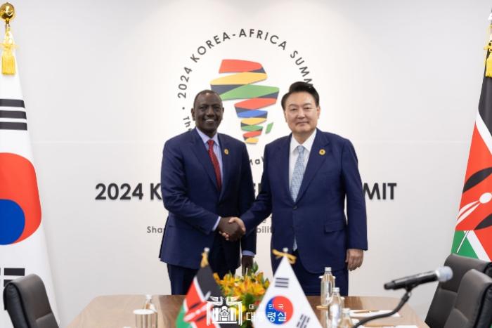 (케냐) 윤 대통령은 루토 대통령이 약 1년 반 만에 다시 방한해 한-아프리카 정상회의에 참석한 것을 환영하면서 올해 양국이 수교 60주년을 맞아 인프라, 식량안보, 해양 등 다양한 분야로 협력의 폭과 깊이를 확대해 나가길 기대한다고 했다. 루토 대통령은 우리 정부가 최초의 한-아프리카 정상회의를 개최한 것을 높이 평가하고 윤 대통령의 협력 증진 의지에 케냐 측도 적극 호응한다면서 군수 분야의 협력도 논의해 나가길 희망한다고 했다. 양 정상은 경제 협력을 한 단계 높이기 위한 경제동반자협정(EPA) 협상을 개시해 나가기로 하고, 우리 정부가 EDCF로 지원하고 있는 케냐 과학기술원(Kenya-AIST) 건립 사업이 성공적으로 마무리되도록 협력해 나가자고 했다.