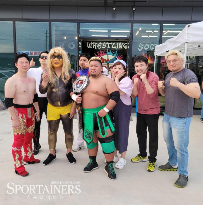 | 15일 경기도 평택 PWS 스튜디오에서 열린 'PWS-TIME FOR REVENGE' 쇼를 마치고 유튜브 '급식왕' 출연 멤버들과 PWS 멤버들이 모여 단체사진을 찍었다. (사진=고초록 기자) |