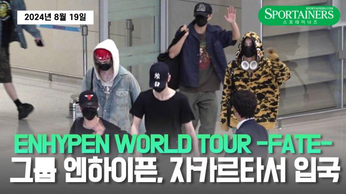 • [인천국제공항=스포테이너즈] 그룹 엔하이픈(ENHYPEN)이 자카르타 월드 투어 일정을 마치고 19일 오전 인천국제공항 제2터미널을 통해 입국했다.