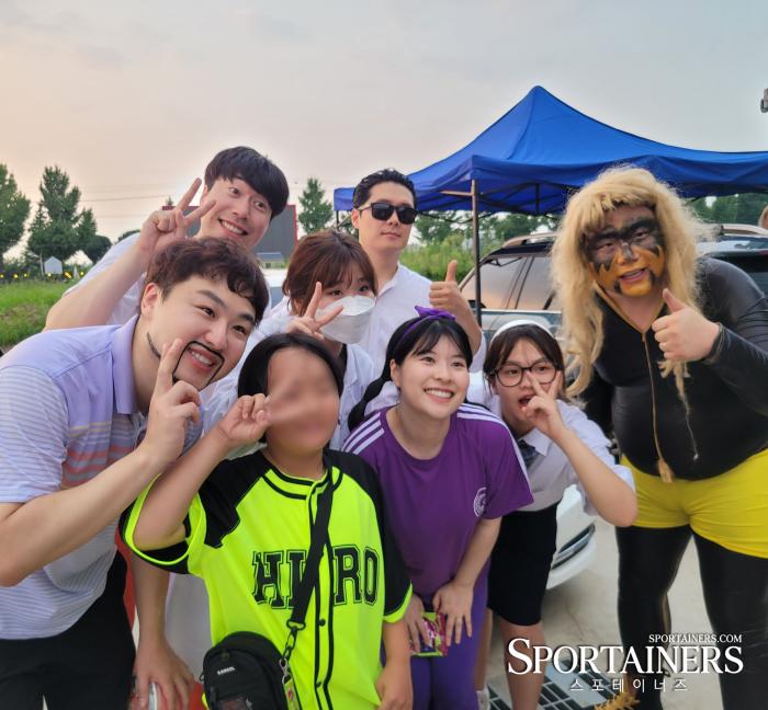 | 어제(24일) 경기도 평택에서 열린 'PWS-EXTREME HEAT'쇼를 마치고 팬들과 함께 사진을 찍고 있는 유튜브 '급식왕' 팀(사진=고초록 기자) |