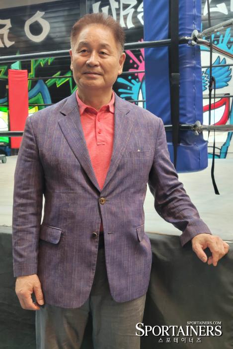 | 어제(24일), 경기도 평택에서 열린 'PWS-EXTREME HEAT'쇼 현장을 방문한 대한프로레슬링협회 김수홍 회장 (사진=고초록 기자) |