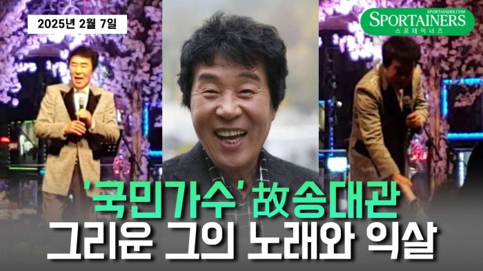 • [스포테이너즈=고초록 기자] '해뜰날', '네박자' 등 많은 히트곡을 남겼던 '트로트 4대 천왕' 故송대관이 어제(7일), 향년 79세로 세상을 떠났다. 그를 추억하며 스포테이너즈 아카이브에 저장된 영상을 공개한다. 영상에는 2017년, 경기도 부천시에서 열린 어느 행사에서의 모습으로 훌륭한 가창력과 특유의 익살로 관객을 휘어잡는 모습이 인상적이다.