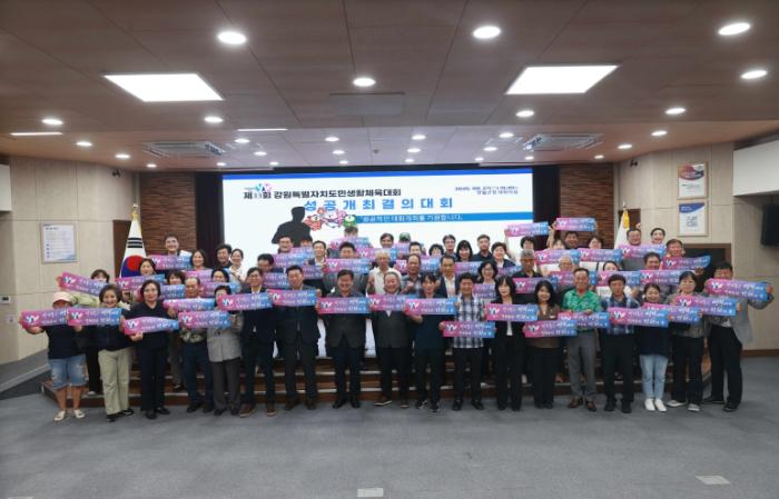 영월군 주요사회단체들이 제33회 강원특별자치도민생활체육대회의 D-30을 앞두고 성공 개최를 다짐하는 결의대회를 진행했다.